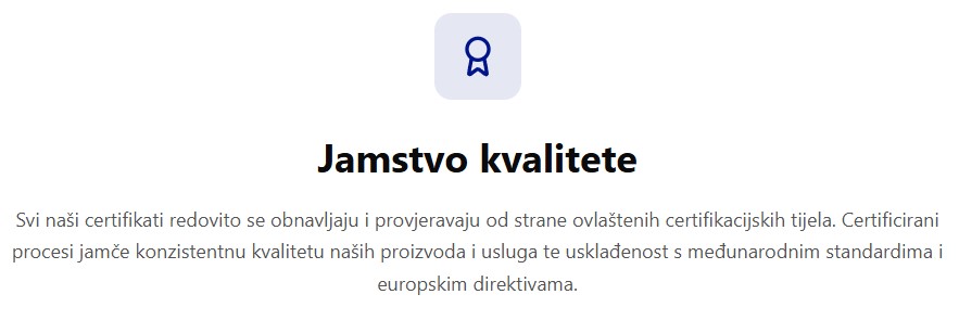 Naše poslovanje temelji se na certificiranim i akreditiranim sustavima upravljanja prema najvišim međunarodnim standardima.